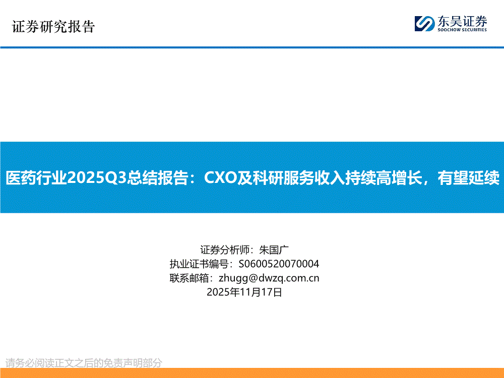 医药行业:东吴证券-医药行业2025Q3总结报告:CXO及科研服务收入持续高增长,有望延续-251117