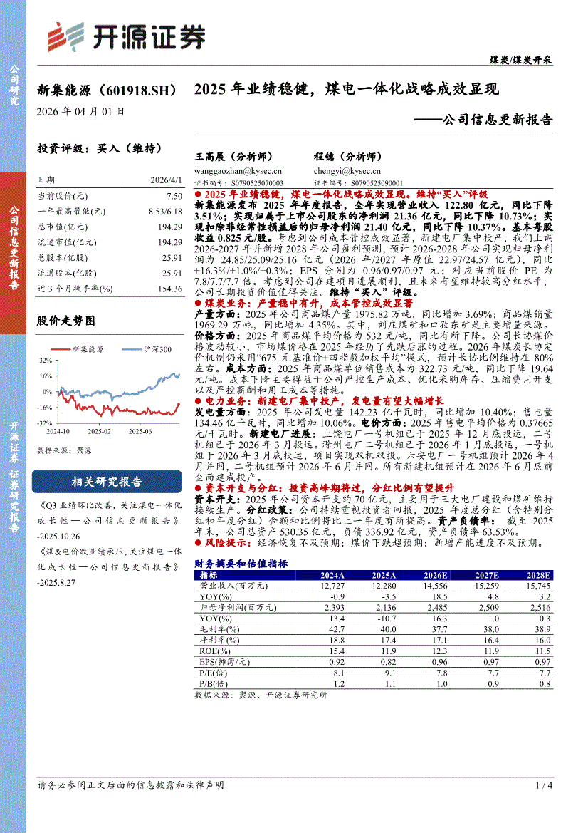 新集能源:开源证券-新集能源-601918-公司信息更新报告:2025年业绩稳健,煤电一体化战略成效显现-260401