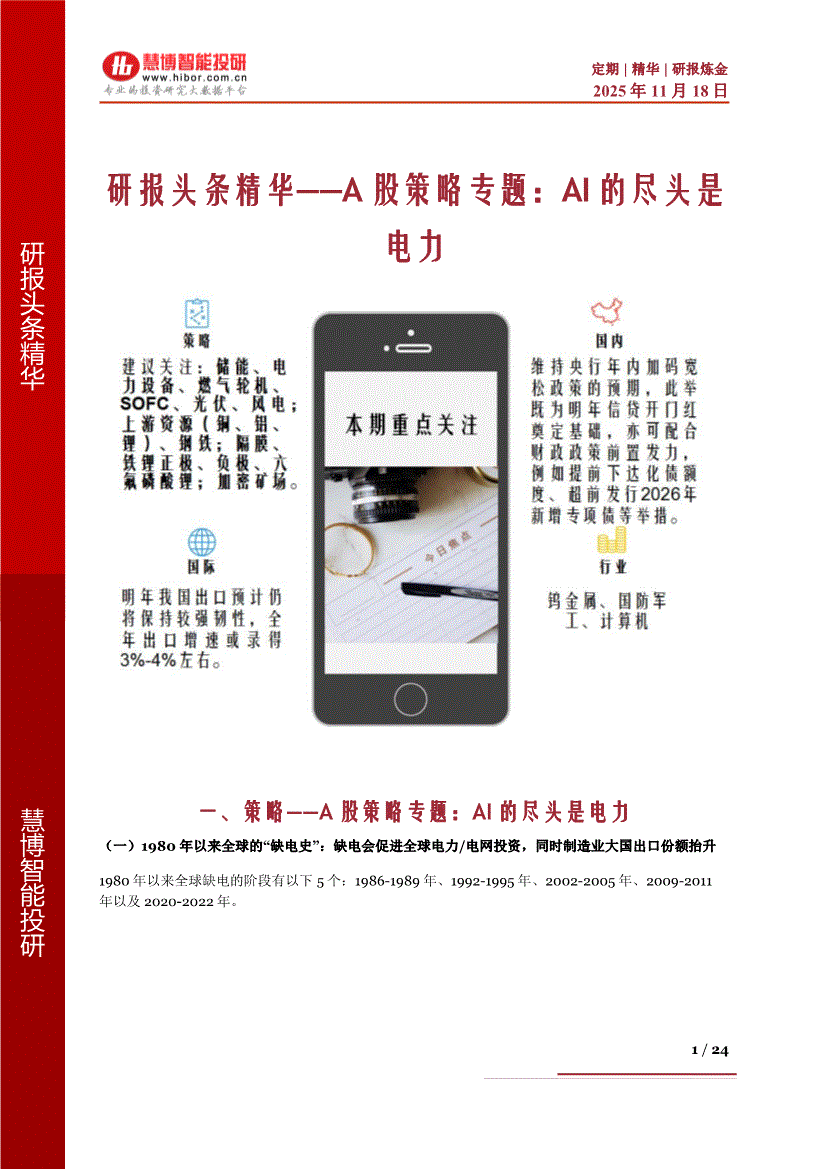 慧博智能投研-慧博研报炼金之研报头条精华:A股策略专题,AI的尽头是电力-251118