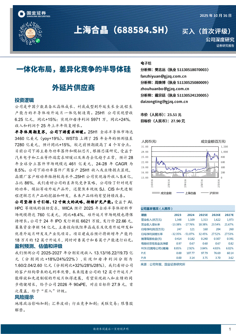 上海合晶:国金证券-上海合晶-688584-一体化布局,差异化竞争的半导体硅外延片供应商-251016