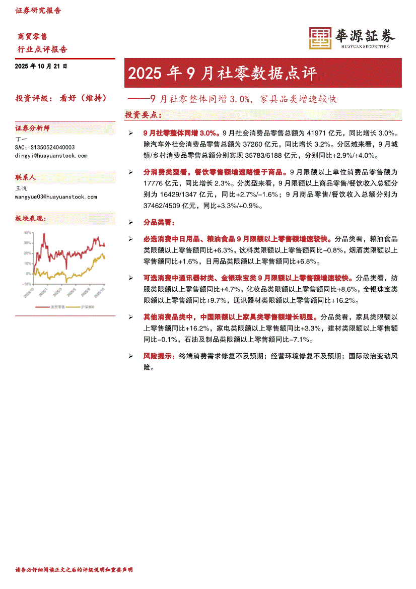 商贸零售行业:华源证券-商贸零售行业2025年9月社零数据点评:9月社零整体同增3.0%,家具品类增速较快-251021