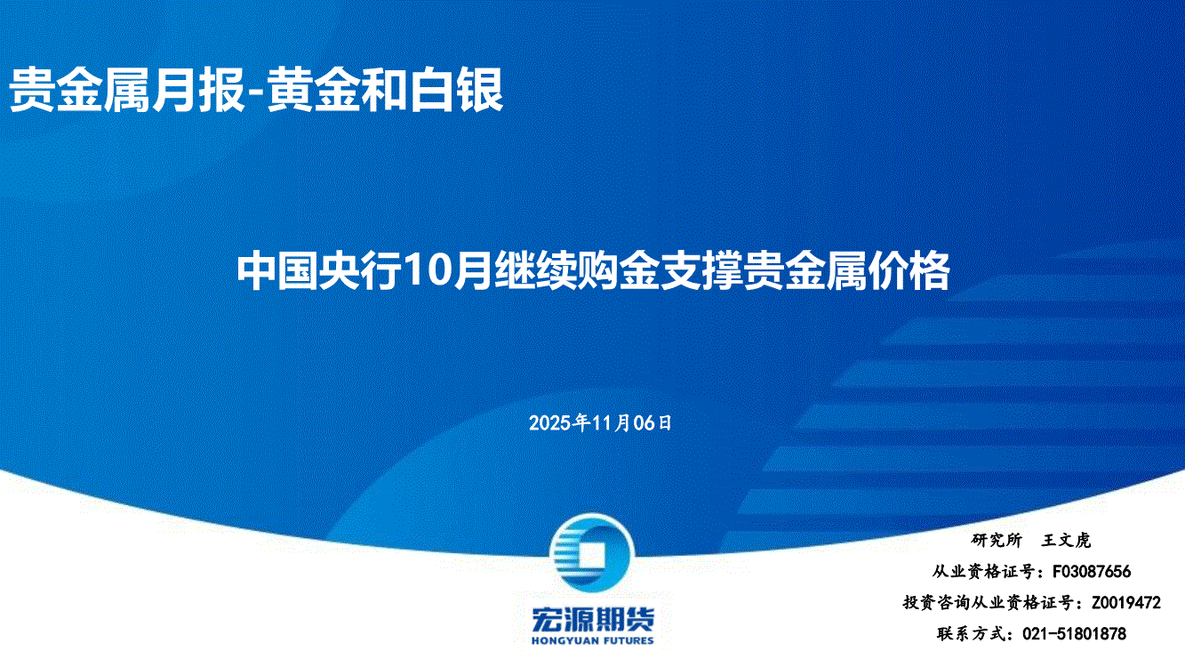 宏源期货-贵金属月报~黄金和白银:中国央行10月继续购金支撑贵金属价格-251106