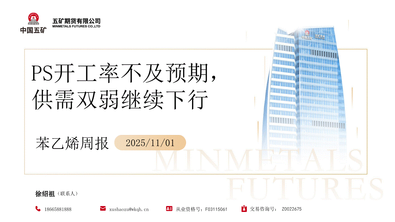 五矿期货-苯乙烯周报:PS开工率不及预期,供需双弱继续下行-251101