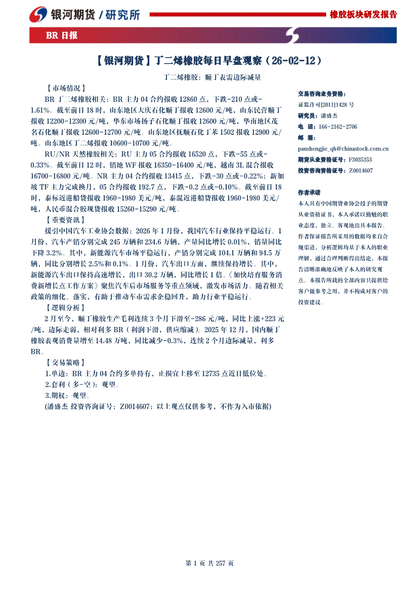 银河期货-丁二烯橡胶每日早盘观察-260212