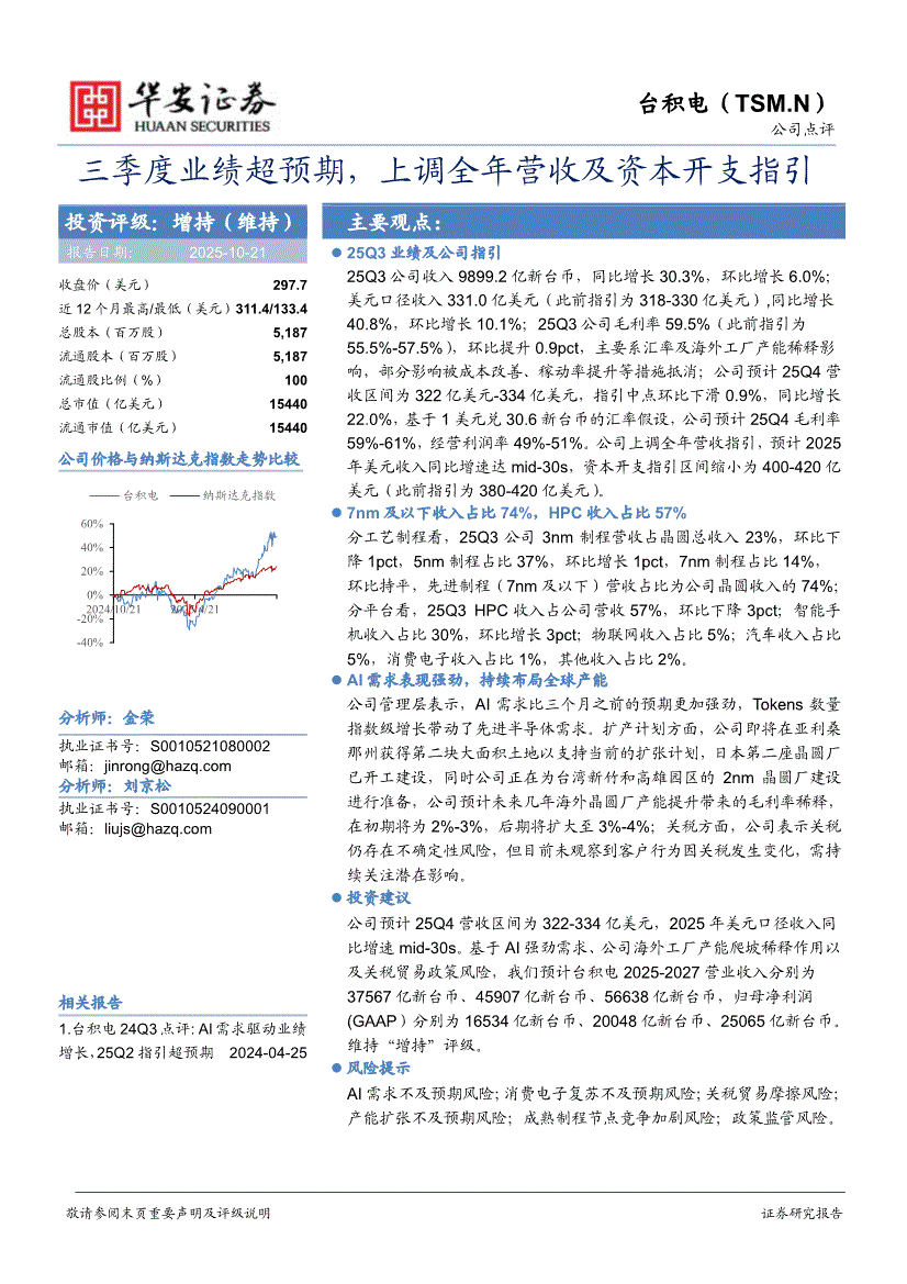 华安证券-台积电-TSM.US-三季度业绩超预期,上调全年营收及资本开支指引-251021