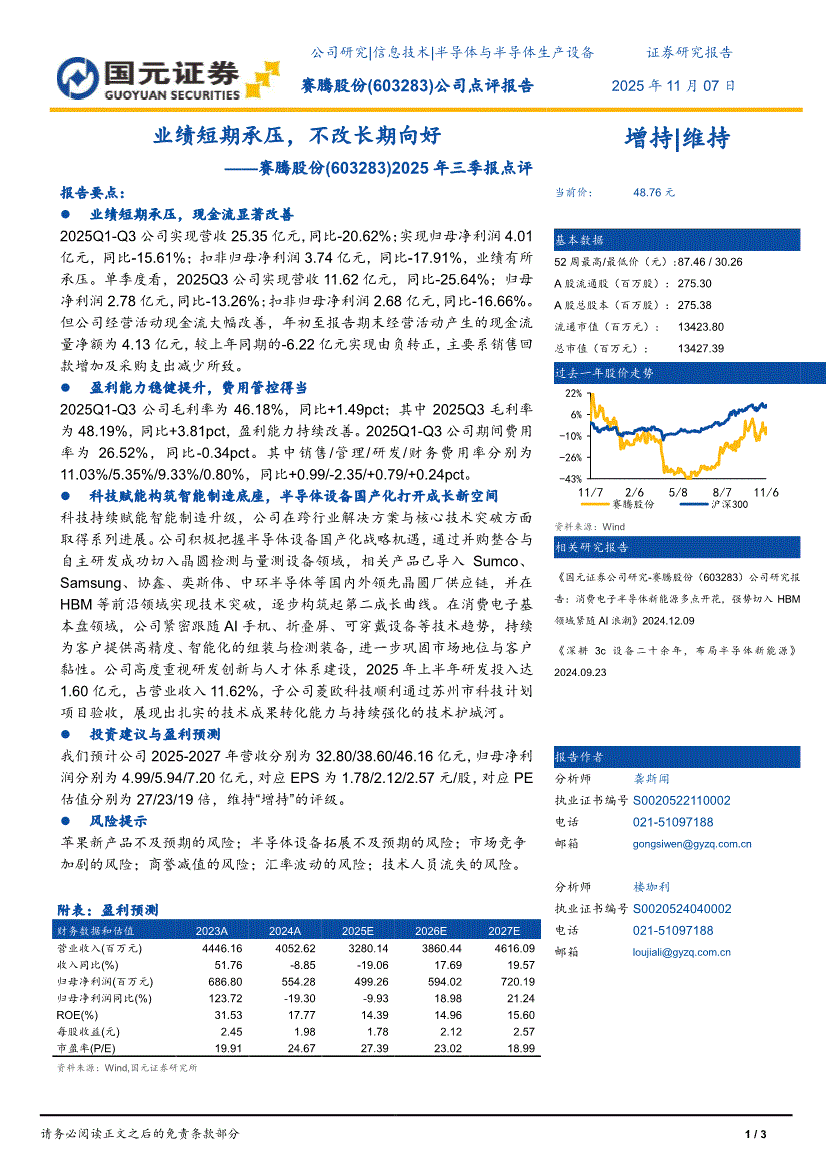赛腾股份:国元证券-赛腾股份-603283-2025年三季报点评:业绩短期承压,不改长期向好-251107