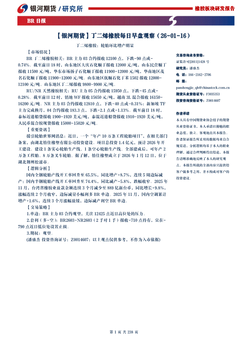 银河期货-丁二烯橡胶每日早盘观察-260116