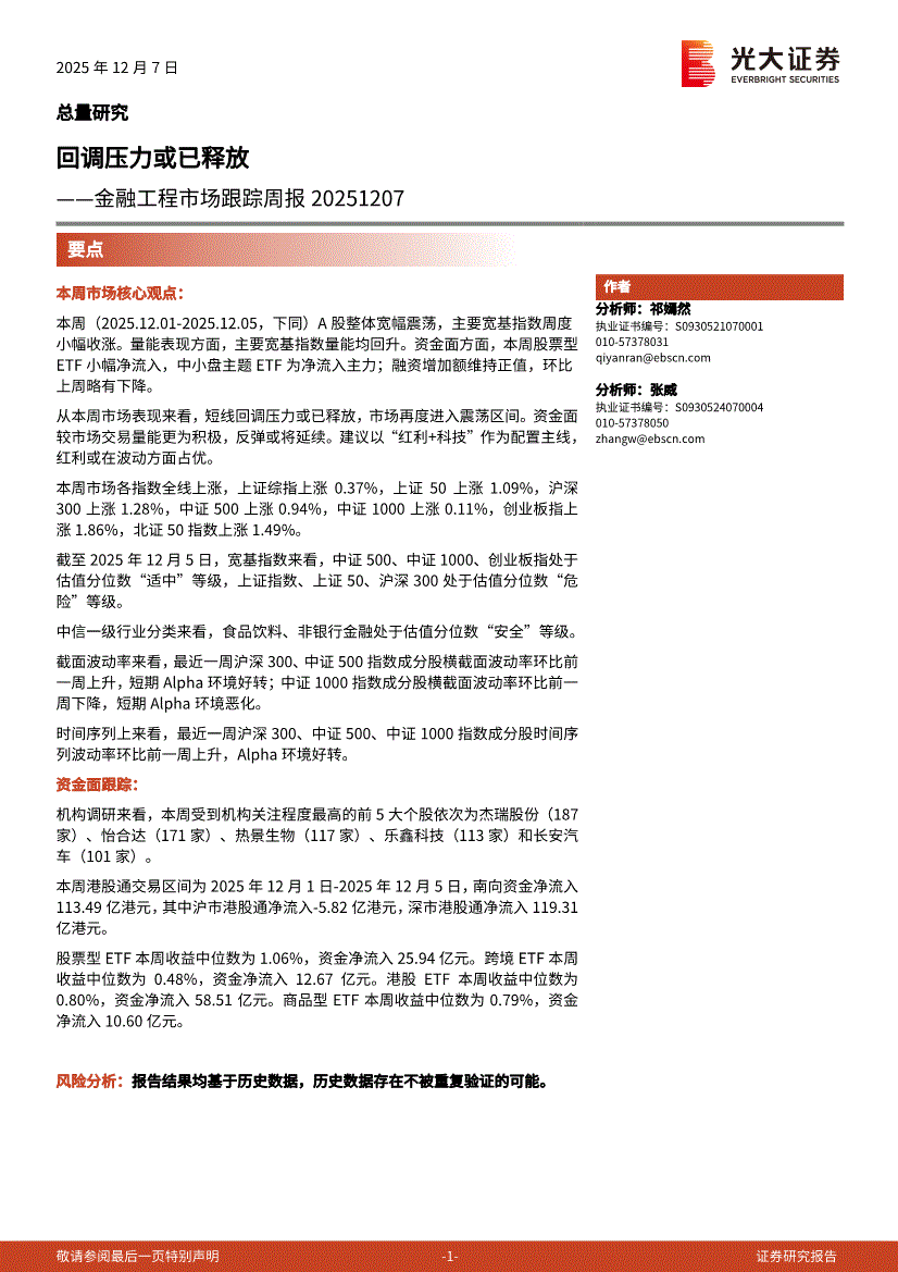 光大证券-金融工程市场跟踪周报:回调压力或已释放-251207