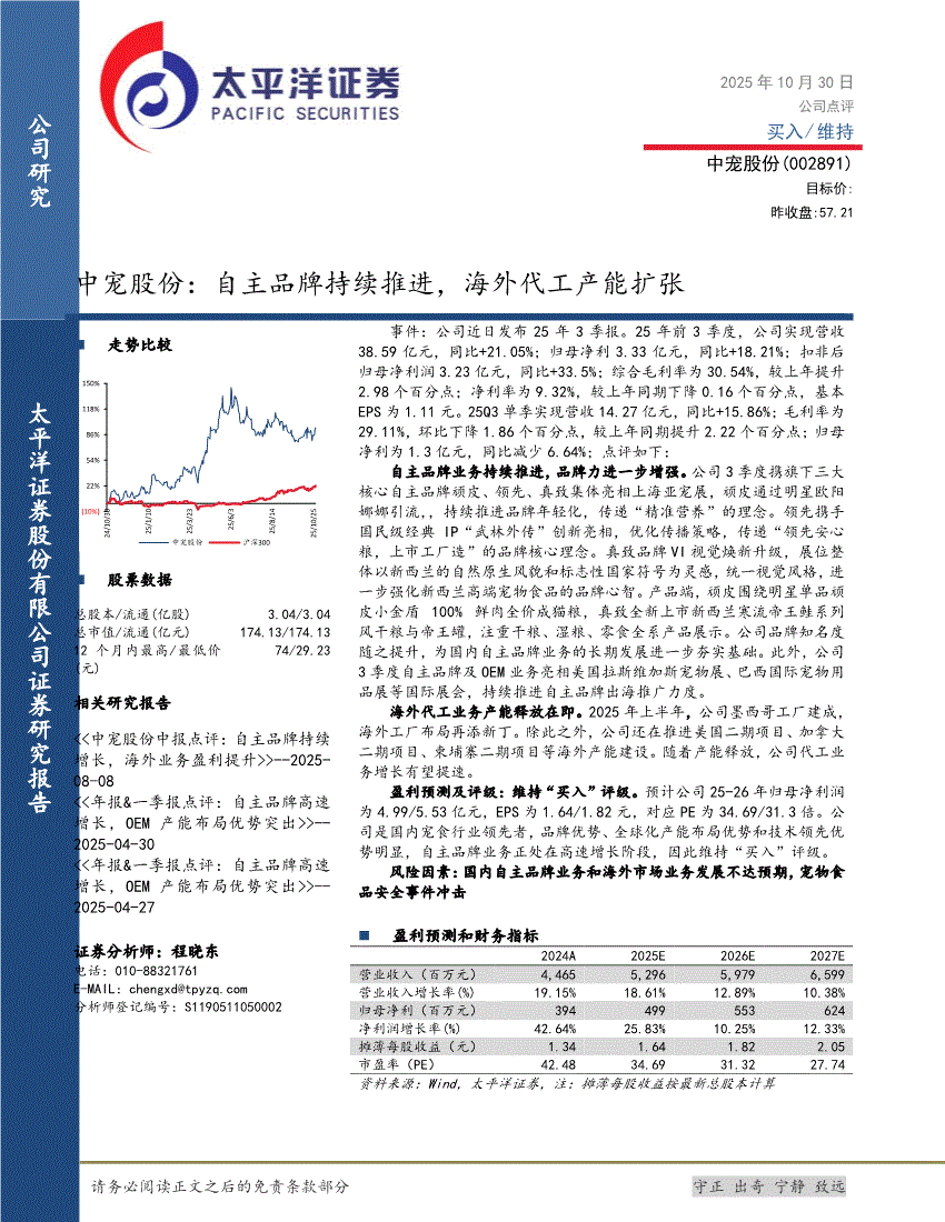 中宠股份:太平洋证券-中宠股份-002891-自主品牌持续推进,海外代工产能扩张-251030
