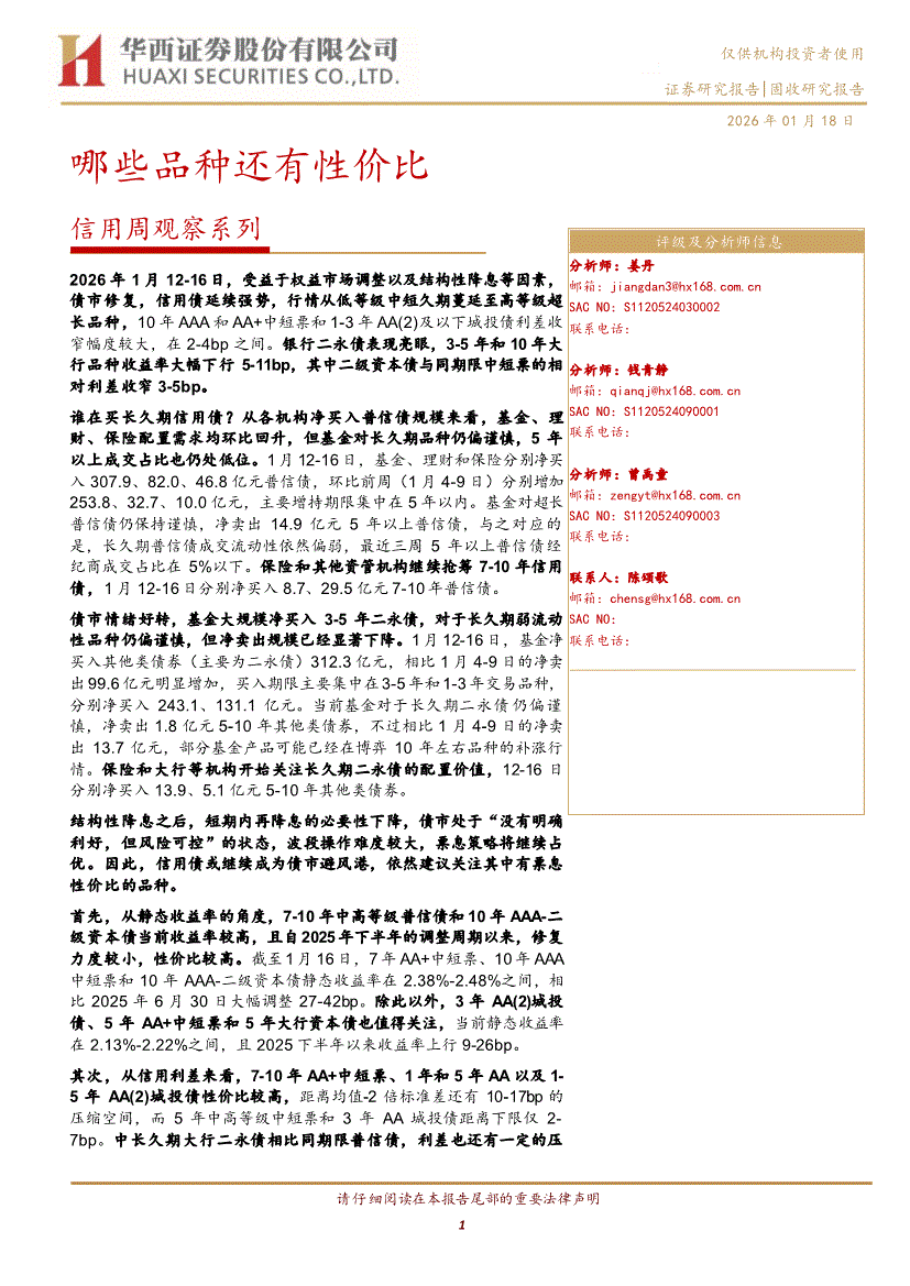华西证券-信用周观察系列:哪些品种还有性价比-260118