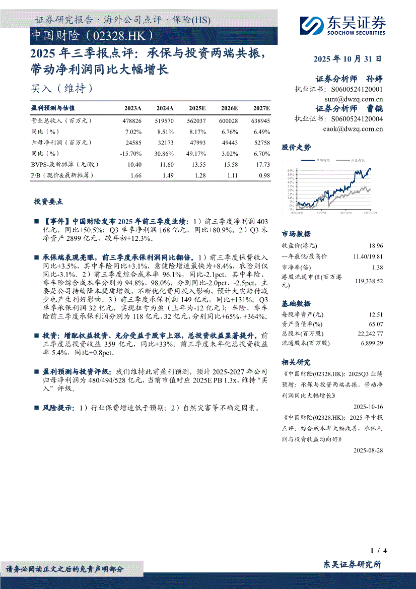 中国财险:东吴证券-中国财险-2328.HK-2025年三季报点评:承保与投资两端共振,带动净利润同比大幅增长-251031