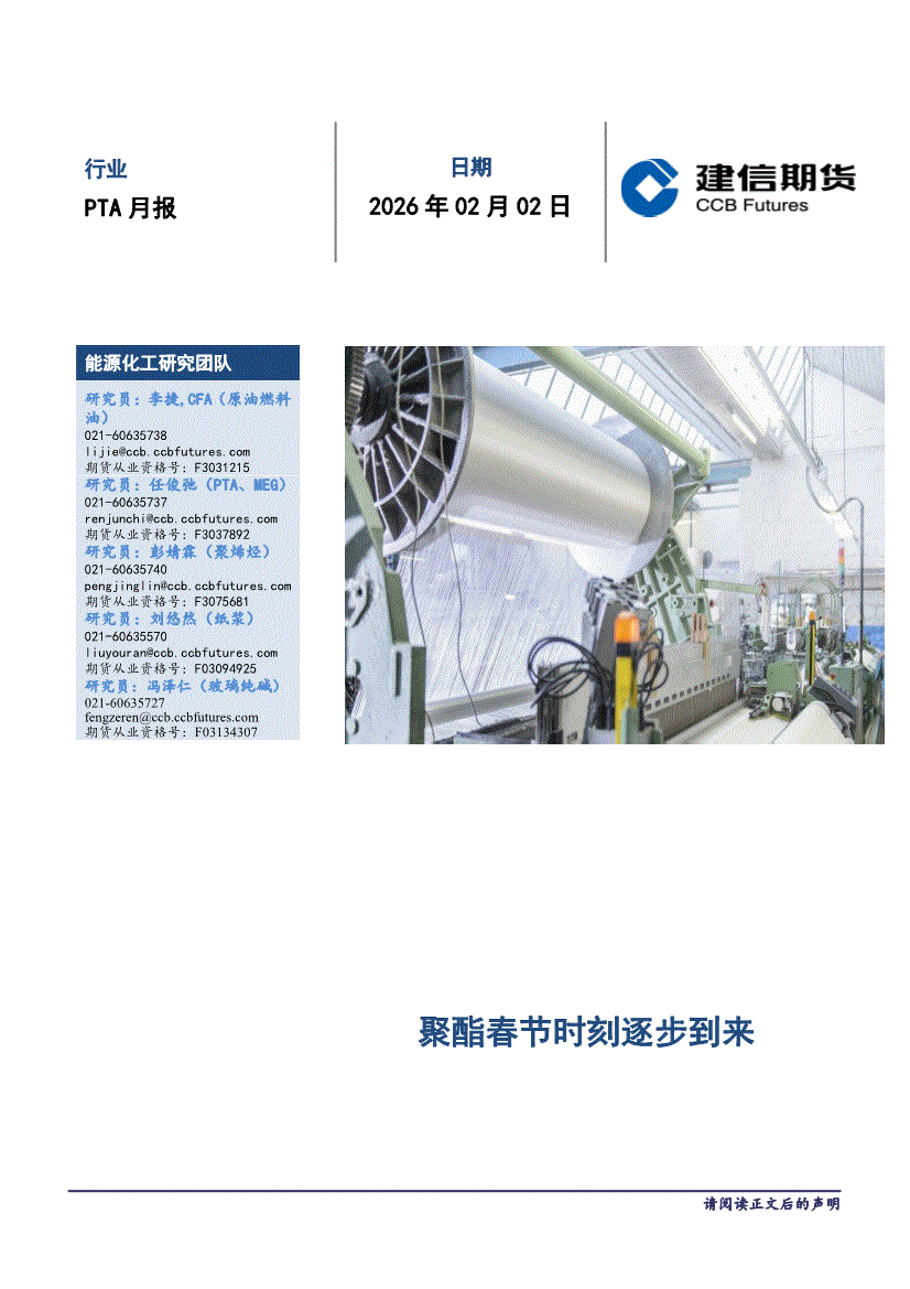 建信期货-PTA月报:聚酯春节时刻逐步到来-260202