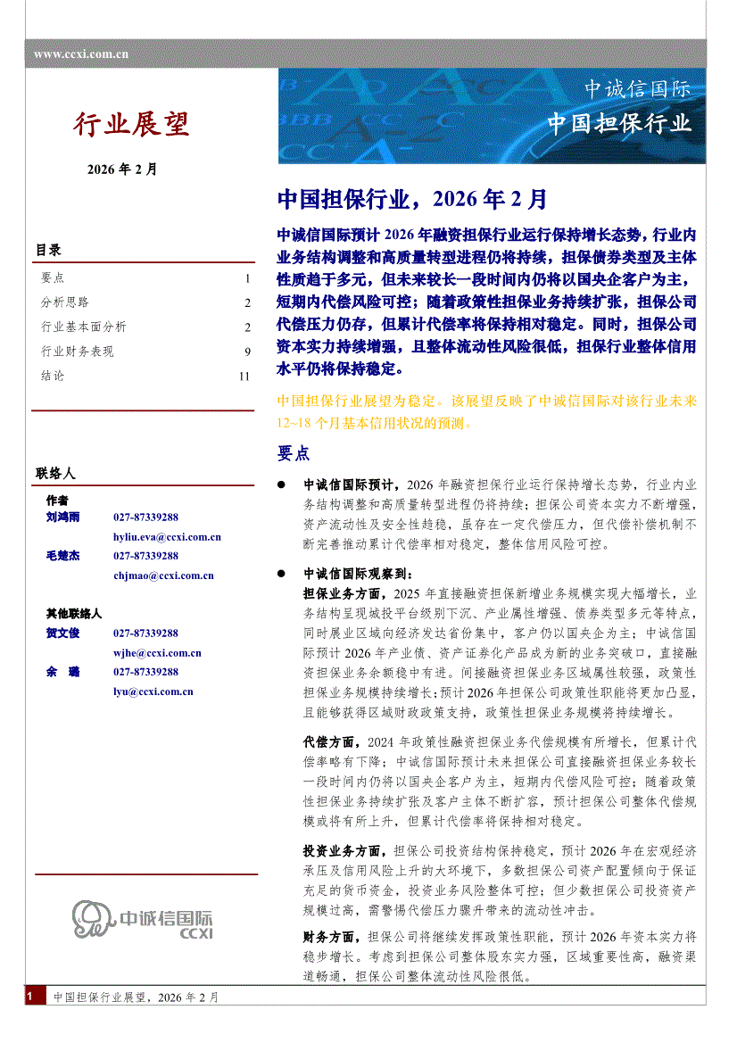 担保行业:中诚信国际-中国担保行业,2026年2月-260205