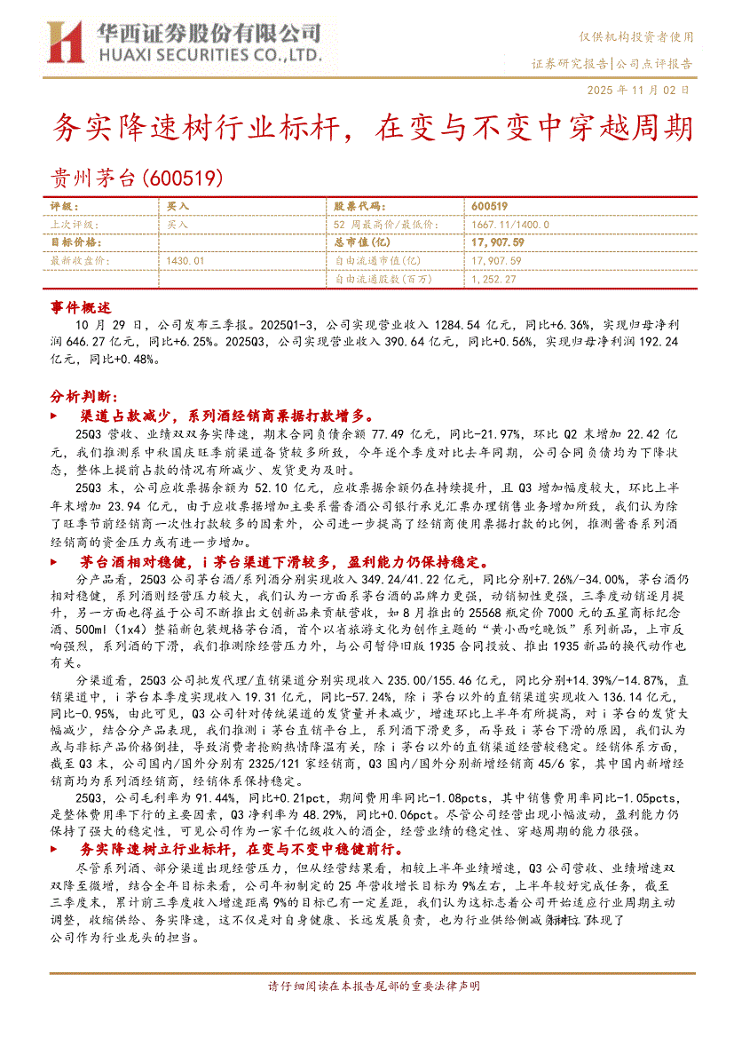 贵州茅台:华西证券-贵州茅台-600519-务实降速树行业标杆,在变与不变中穿越周期-251102