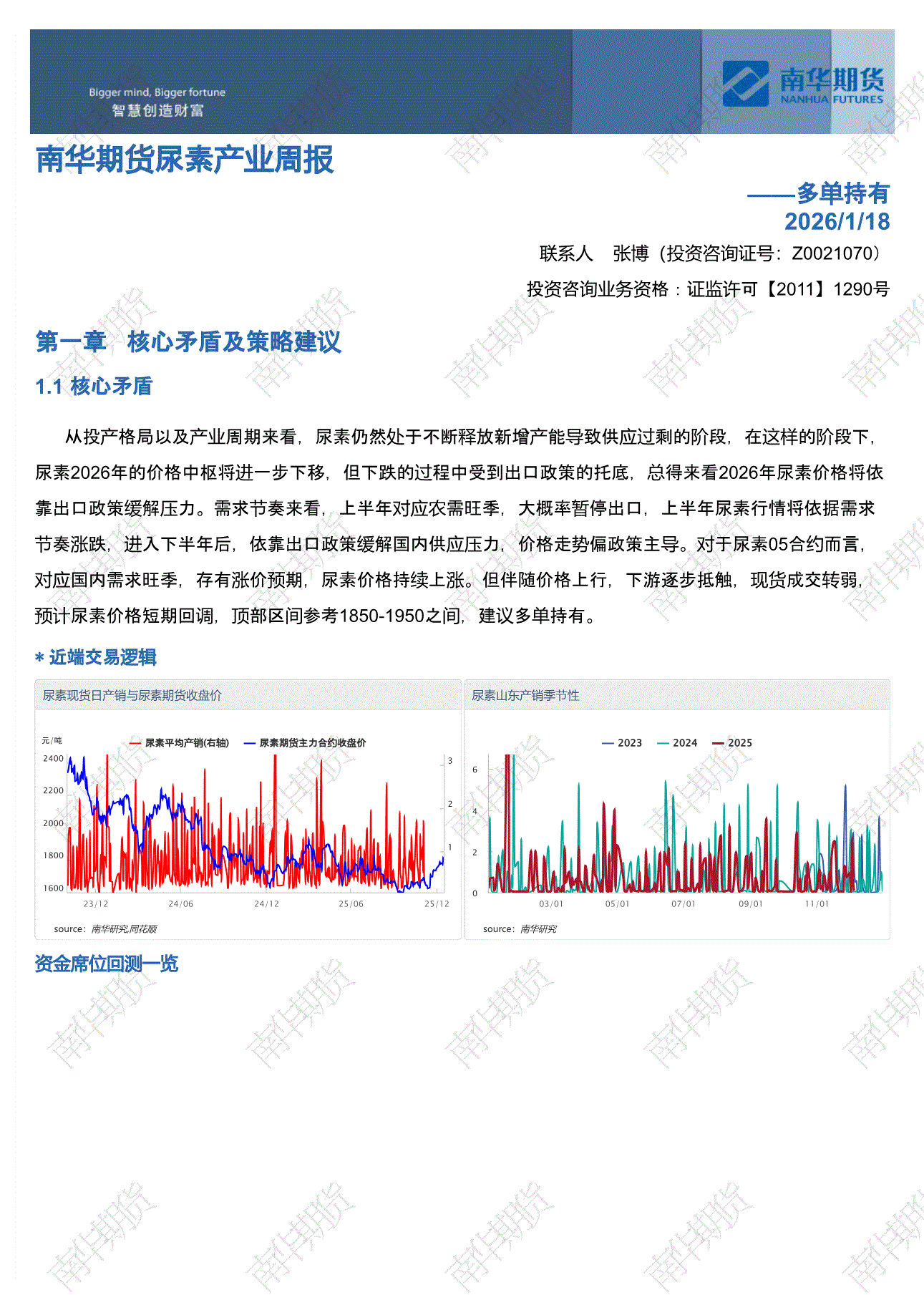 南华期货-尿素产业周报:多单持有-260118