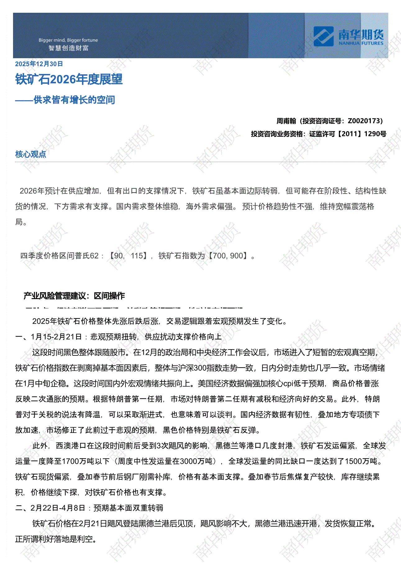 南华期货-铁矿石2026年度展望:供需皆有增长空间-251230