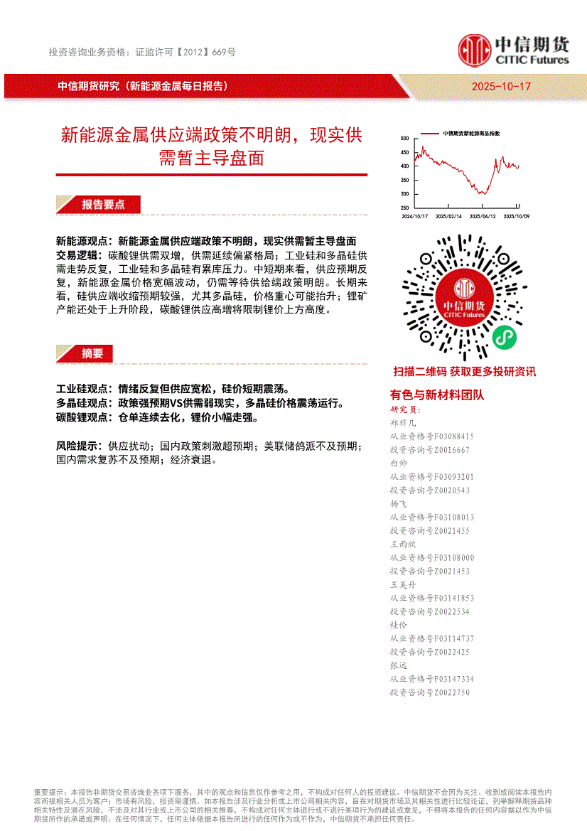 中信期货-新能源金属每日报告:新能源金属供应端政策不明朗,现实供需暂主导盘面-251017