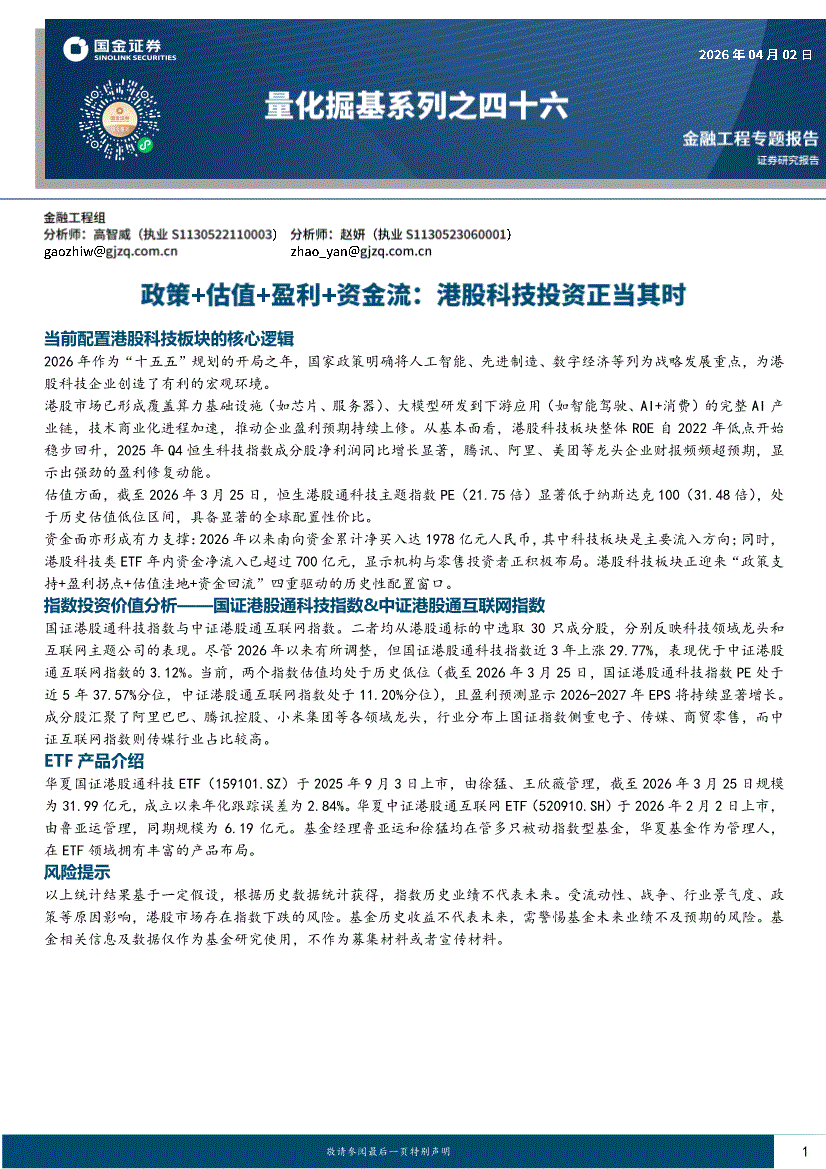国金证券-量化掘基系列之四十六:政策+估值+盈利+资金流,港股科技投资正当其时-260402