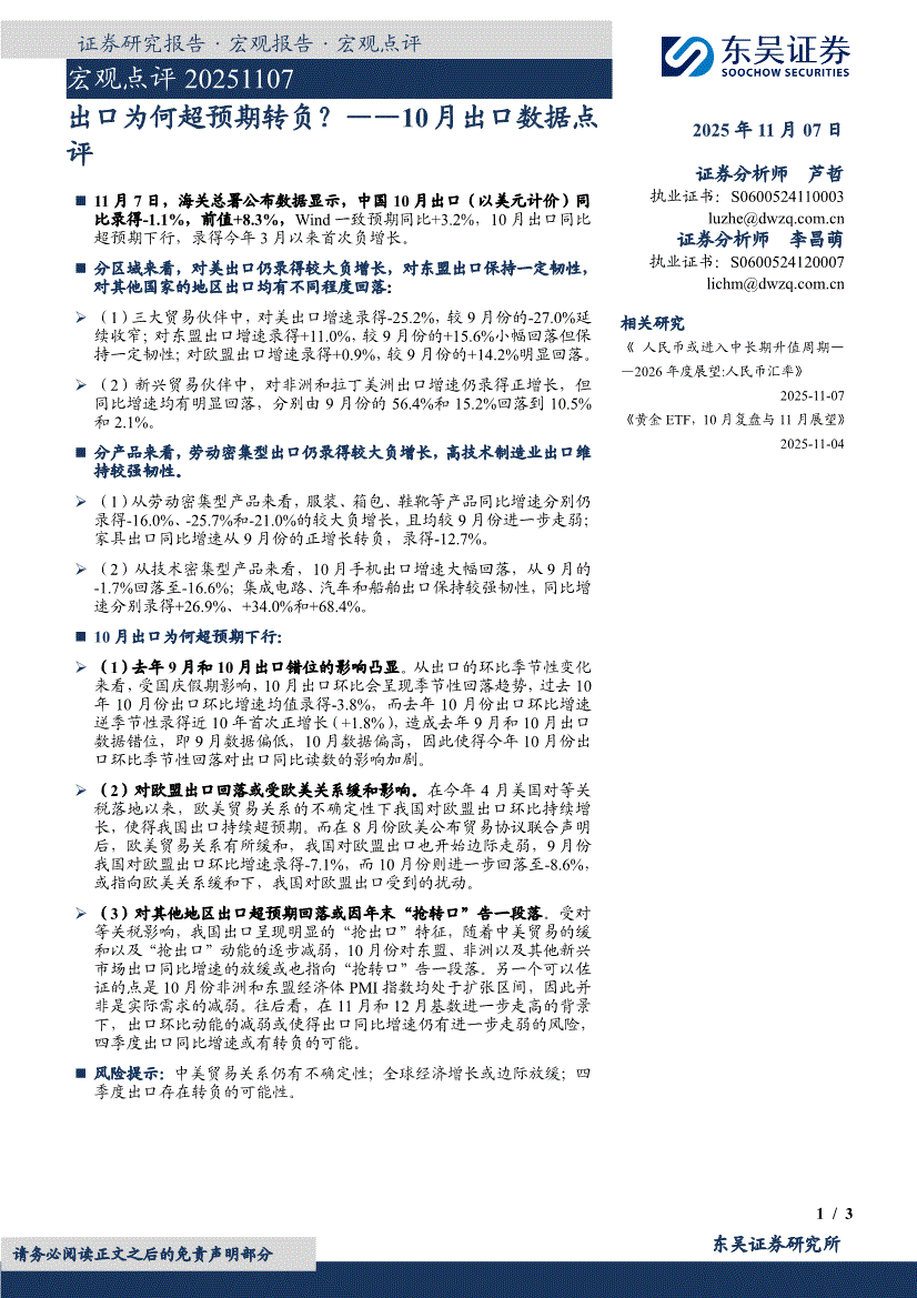 东吴证券-10月出口数据点评:出口为何超预期转负?-251107