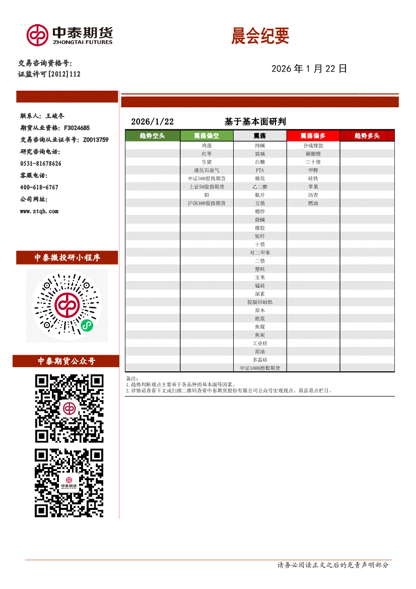 中泰期货-晨会纪要-260122