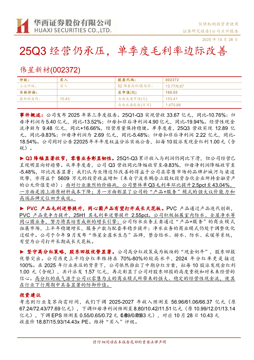 伟星新材:华西证券-伟星新材-002372-25Q3经营仍承压,单季度毛利率边际改善-251028