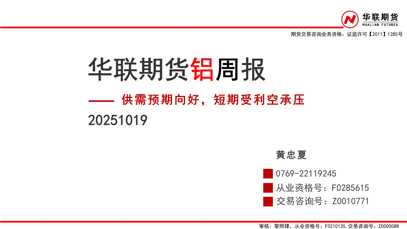 华联期货-铝周报:供需预期向好,短期受利空承压-251019