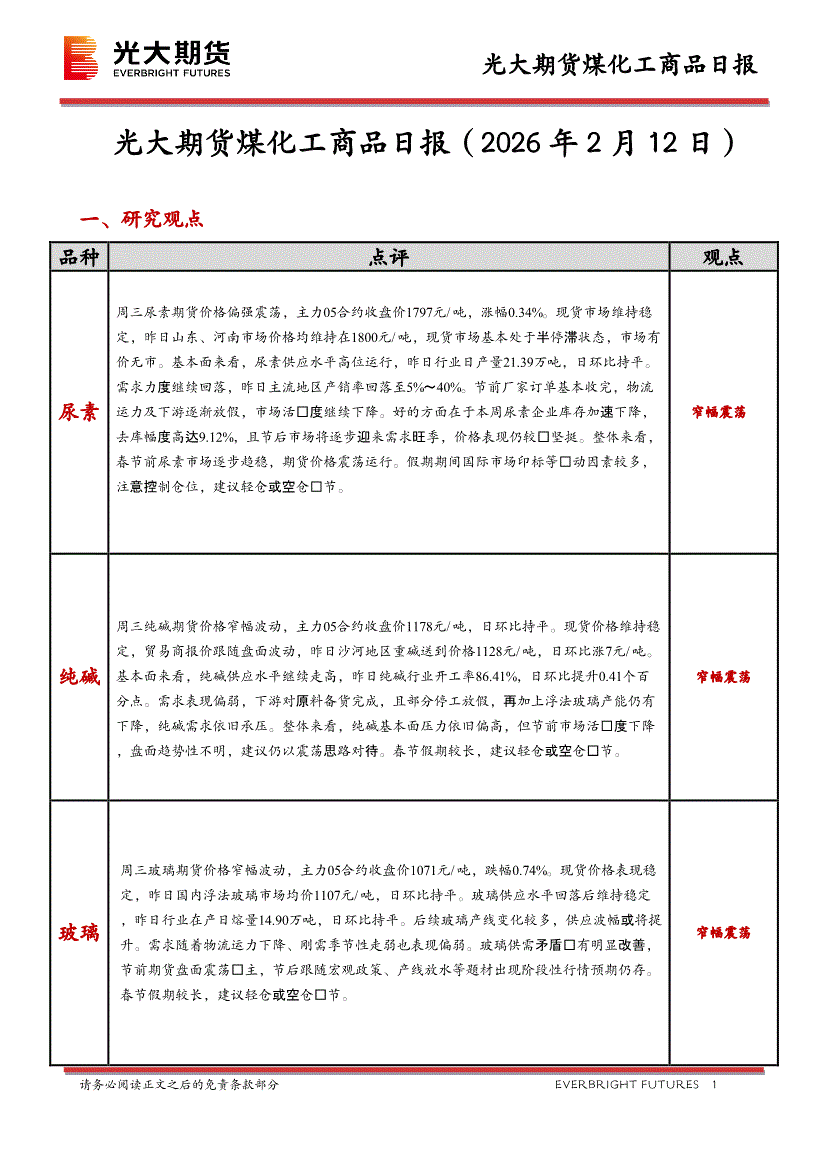 光大期货-煤化工商品日报-260212