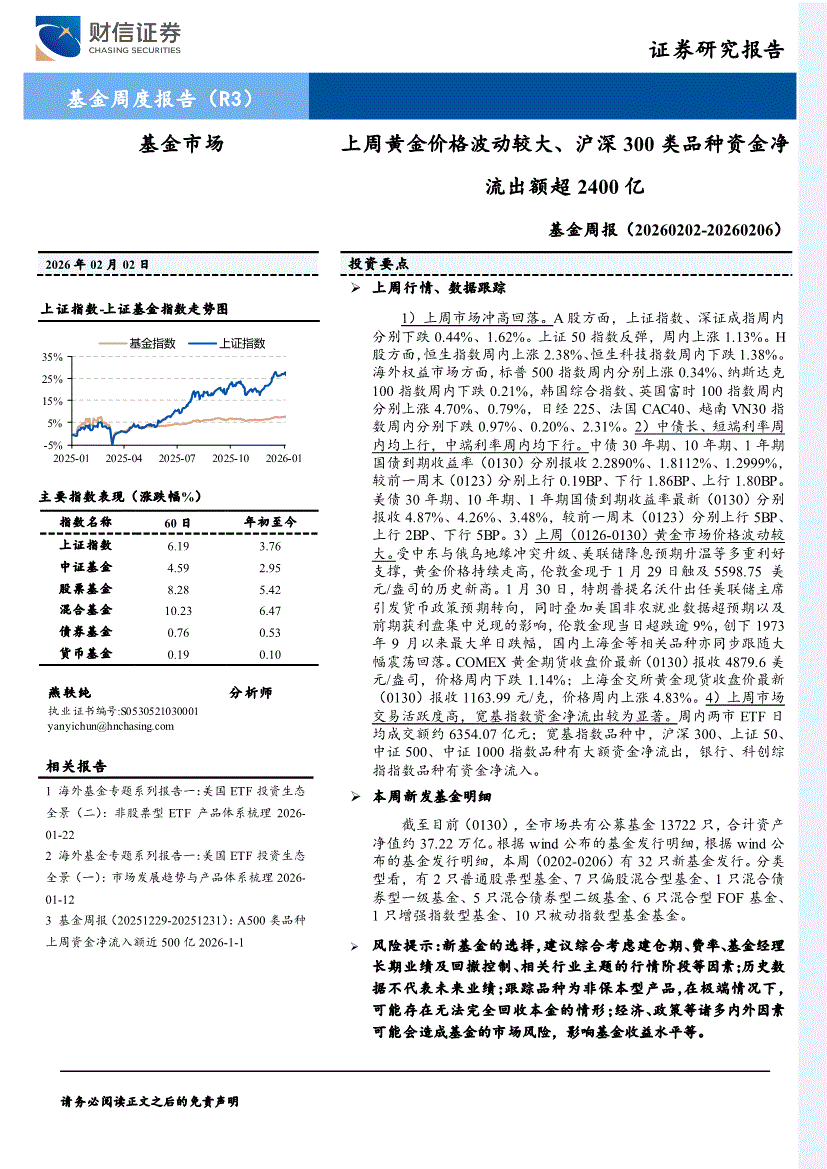 财信证券-基金周报:上周黄金价格波动较大、沪深300类品种资金净流出额超2400亿-260202