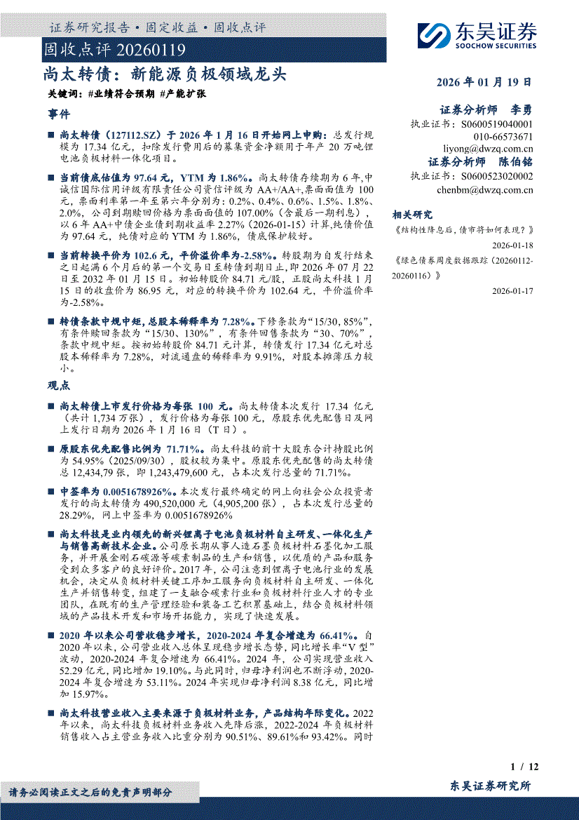 东吴证券-固收点评:尚太转债,新能源负极领域龙头-260119