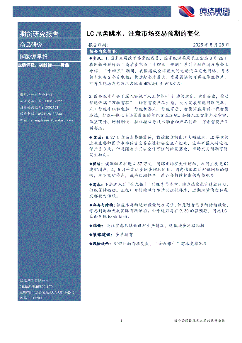 信达期货-碳酸锂早报:LC尾盘跳水,注意市场交易预期的变化-250828