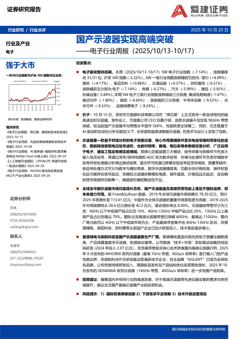 电子行业:爱建证券-电子行业周报:国产示波器实现高端突破-251020