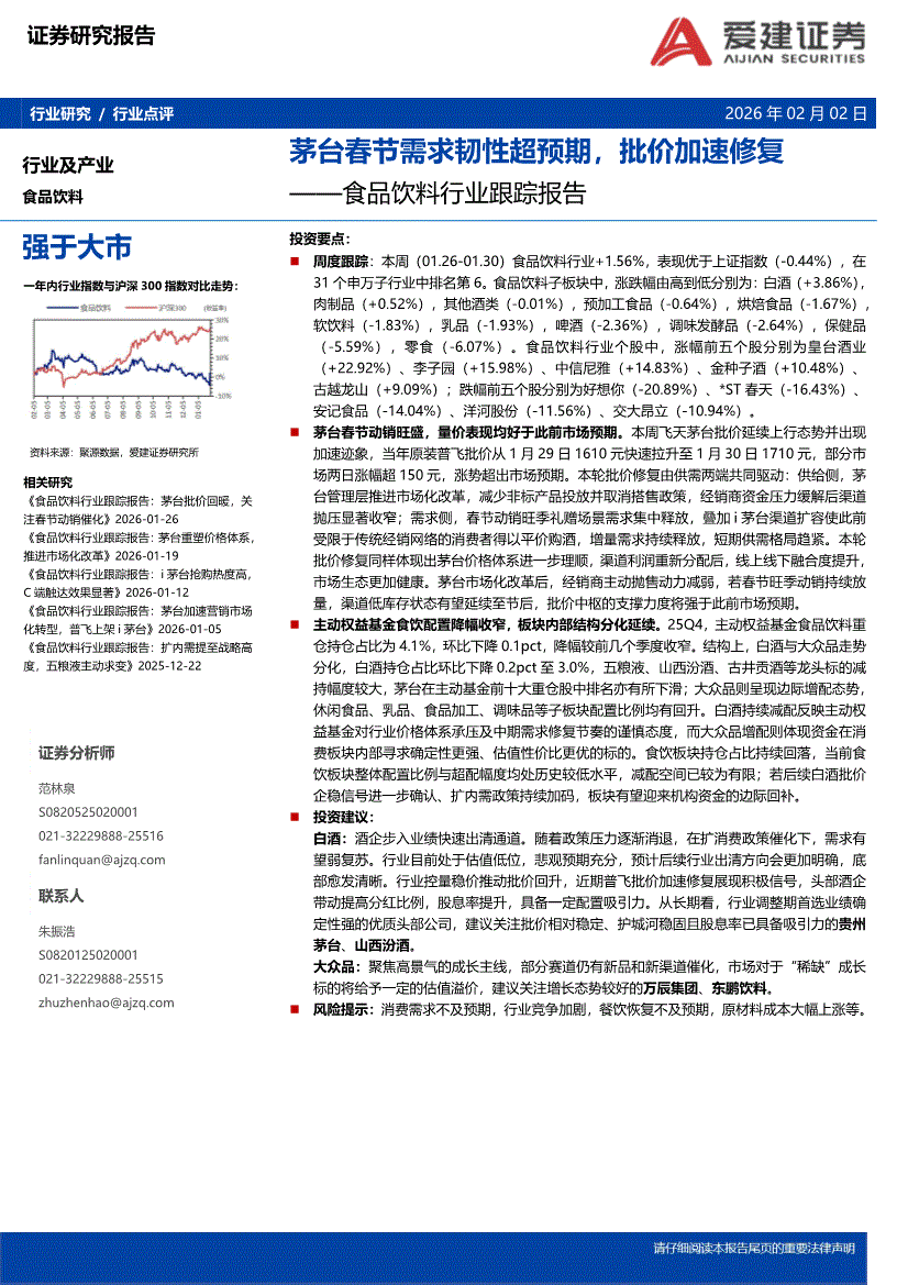 食品饮料行业:爱建证券-食品饮料行业跟踪报告:茅台春节需求韧性超预期,批价加速修复-260202