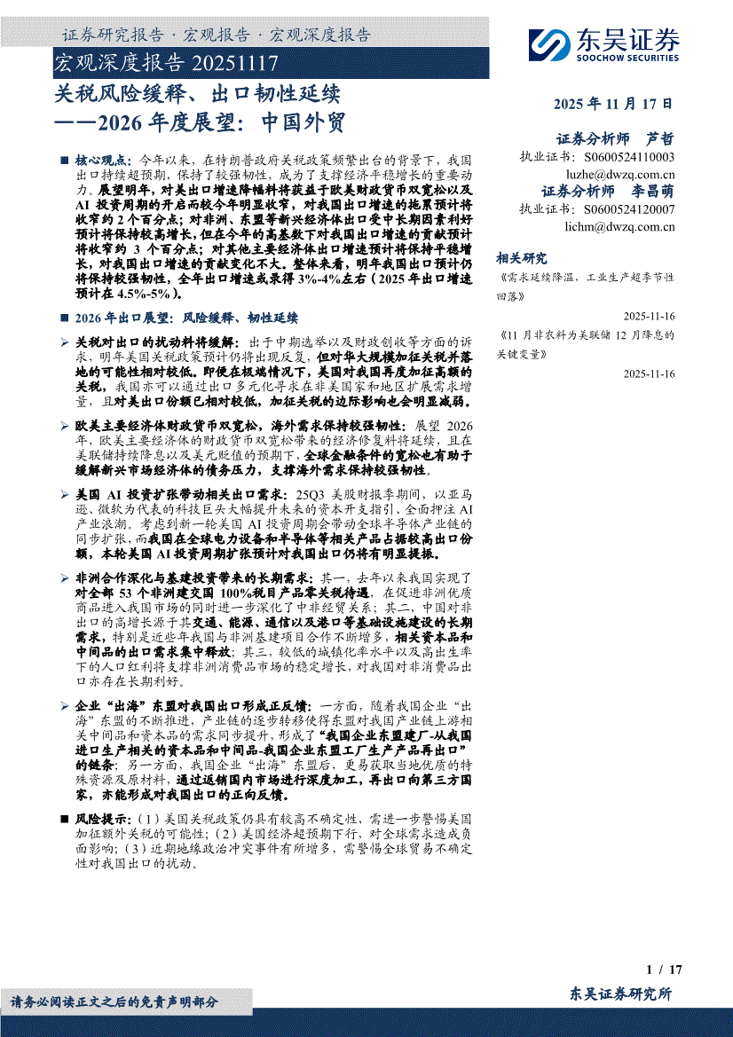 东吴证券-2026年度展望:中国外贸,关税风险缓释、出口韧性延续-251117