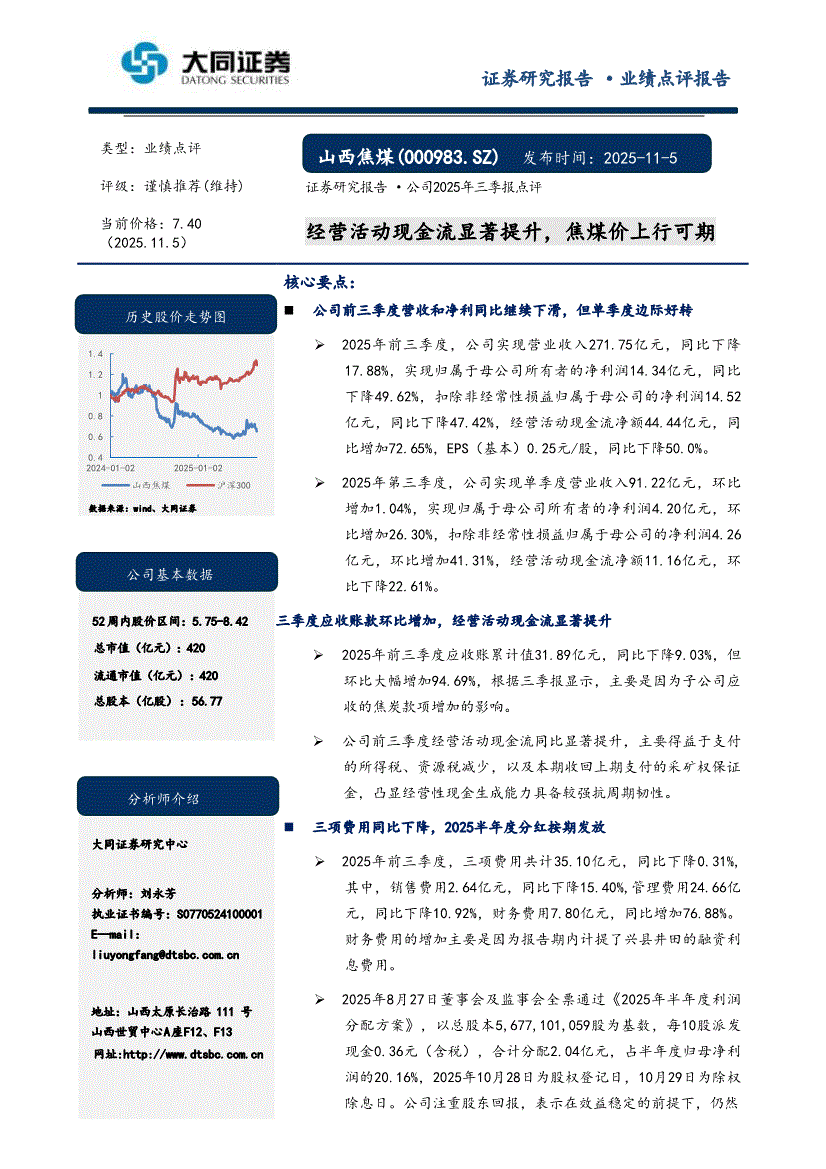 山西焦煤:大同证券-山西焦煤-000983-经营活动现金流显著提升,焦煤价上行可期-251105