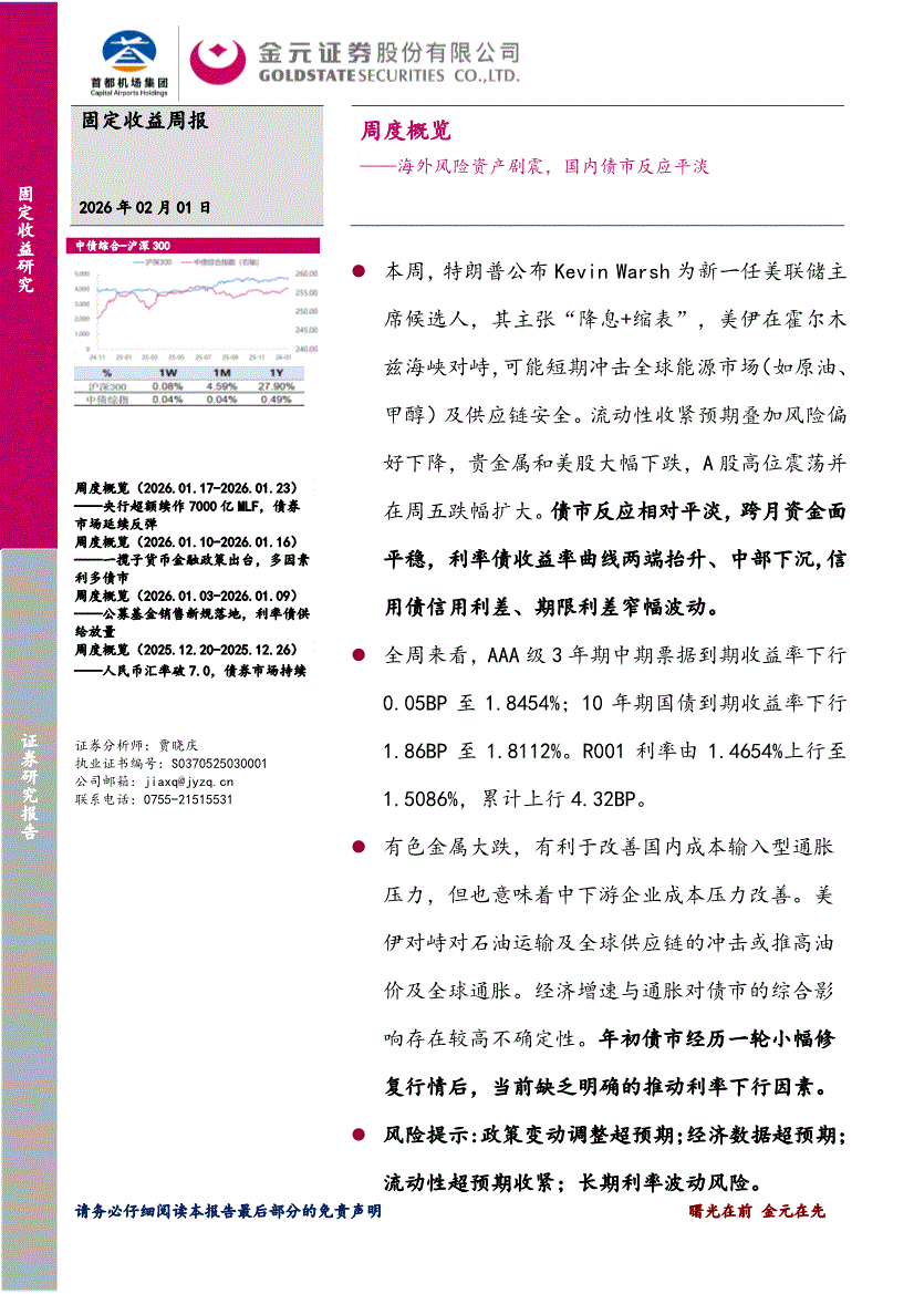 金元证券-周度概览:海外风险资产剧震,国内债市反应平淡-260201