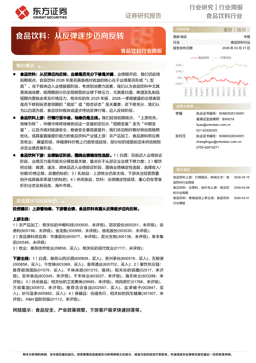 食品饮料行业:东方证券-食品饮料行业周报:食品饮料,从反弹逐步迈向反转-260321