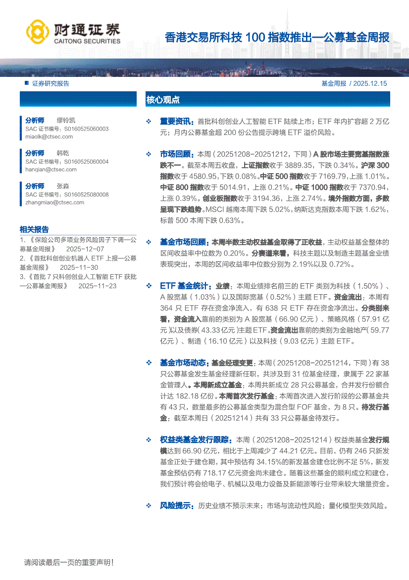 财通证券-公募基金周报:香港交易所科技100指数推出-251215