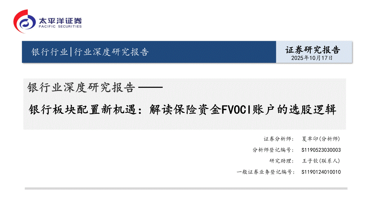 银行业:太平洋证券-银行业深度研究报告:银行板块配置新机遇,解读保险资金FVOCI账户的选股逻辑-251017