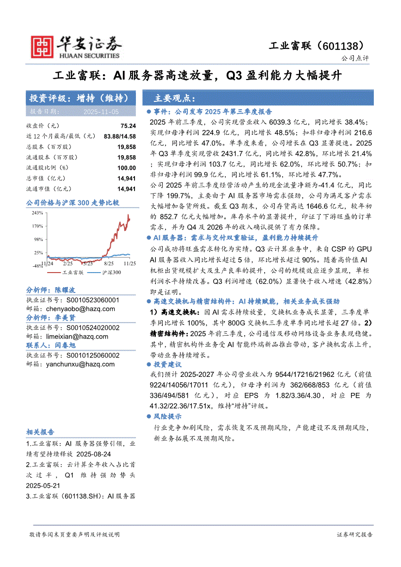 工业富联:华安证券-工业富联-601138-AI服务器高速放量,Q3盈利能力大幅提升-251105