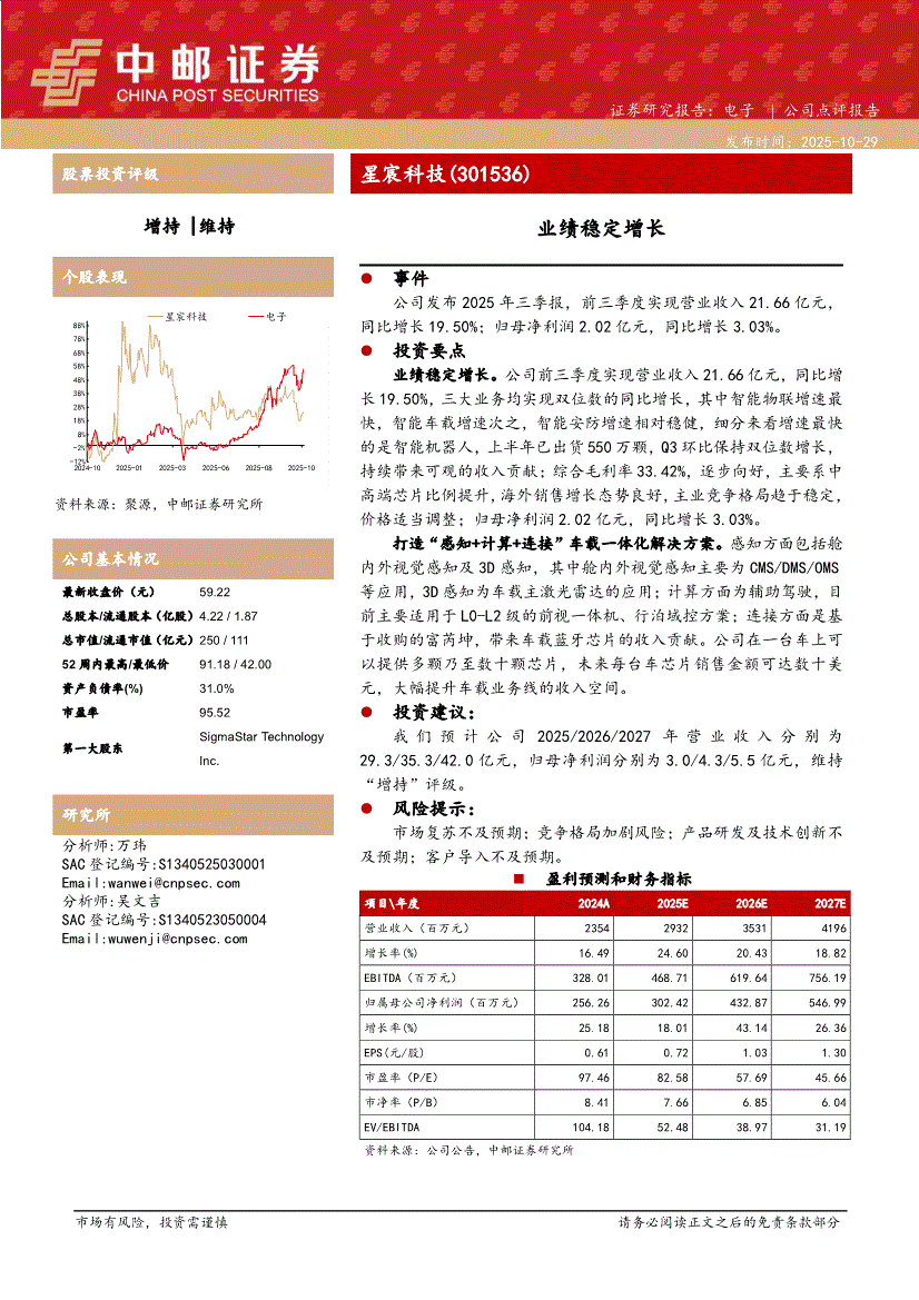 星宸科技:中邮证券-星宸科技-301536-业绩稳定增长-251029