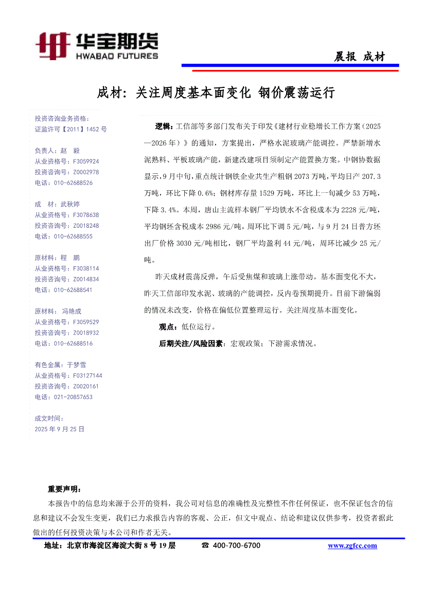 华宝期货-成材:关注周度基本面变化,钢价震荡运行-250925