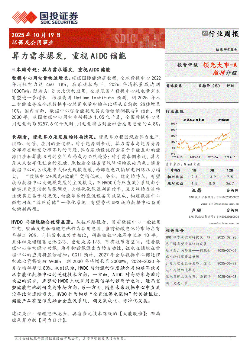 环保及公用事业行业:国投证券-环保及公用事业行业:算力需求爆发,重视AIDC储能-251019