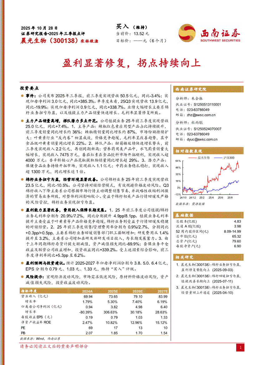 晨光生物:西南证券-晨光生物-300138-盈利显著修复,拐点持续向上-251028