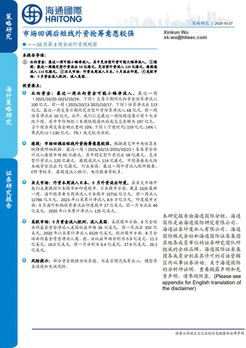 海通国际-10月第3周全球外资周观察:市场回调后短线外资抢筹意愿较强-251027