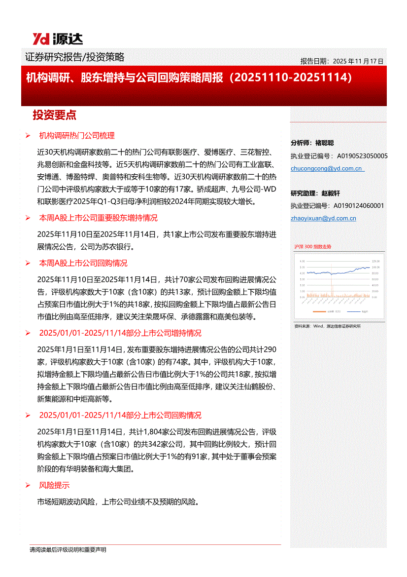 源达信息-机构调研、股东增持与公司回购策略周报-251117