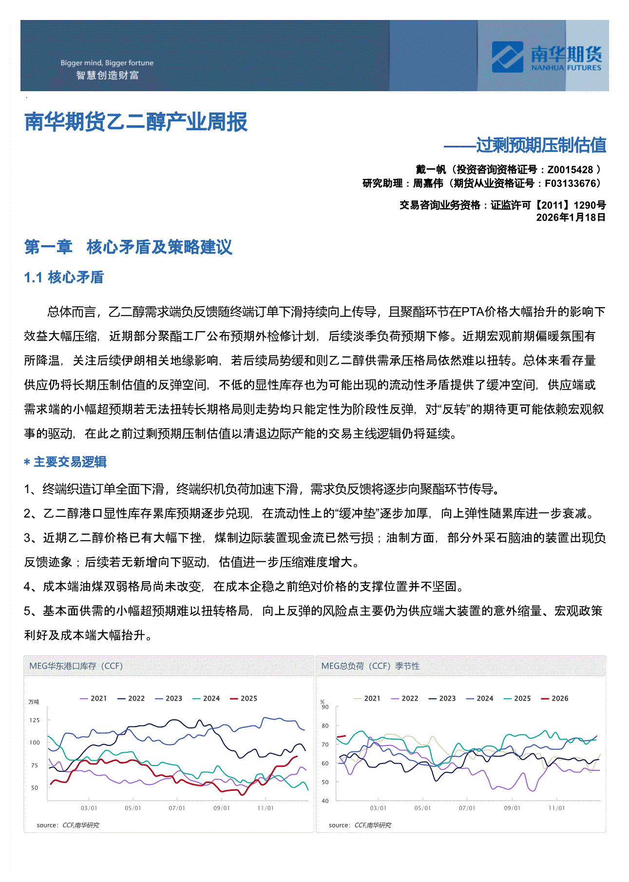 南华期货-乙二醇产业周报:过剩预期压制估值-260118