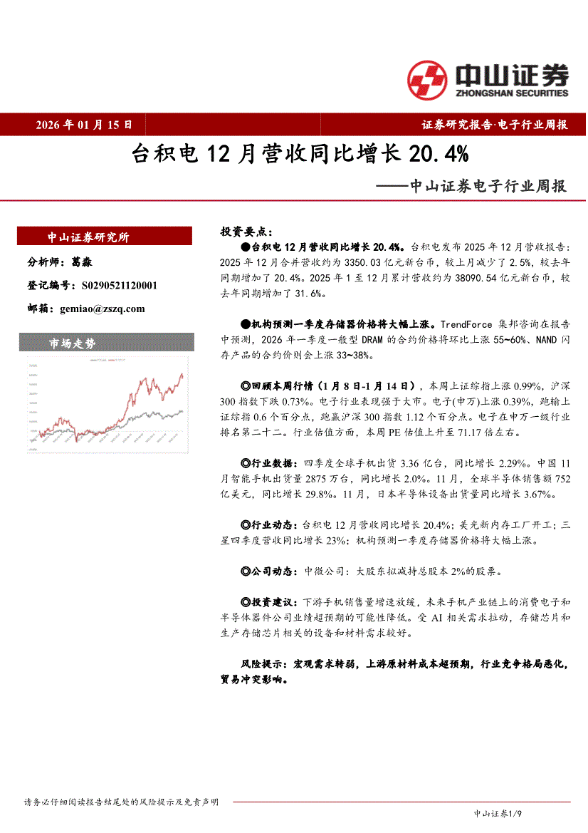 电子行业:中山证券-电子行业周报:台积电12月营收同比增长20.4%-260115