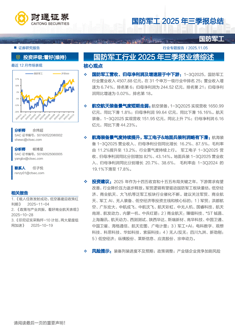 国防军工行业:财通证券-国防军工行业2025年三季报业绩综述-251105