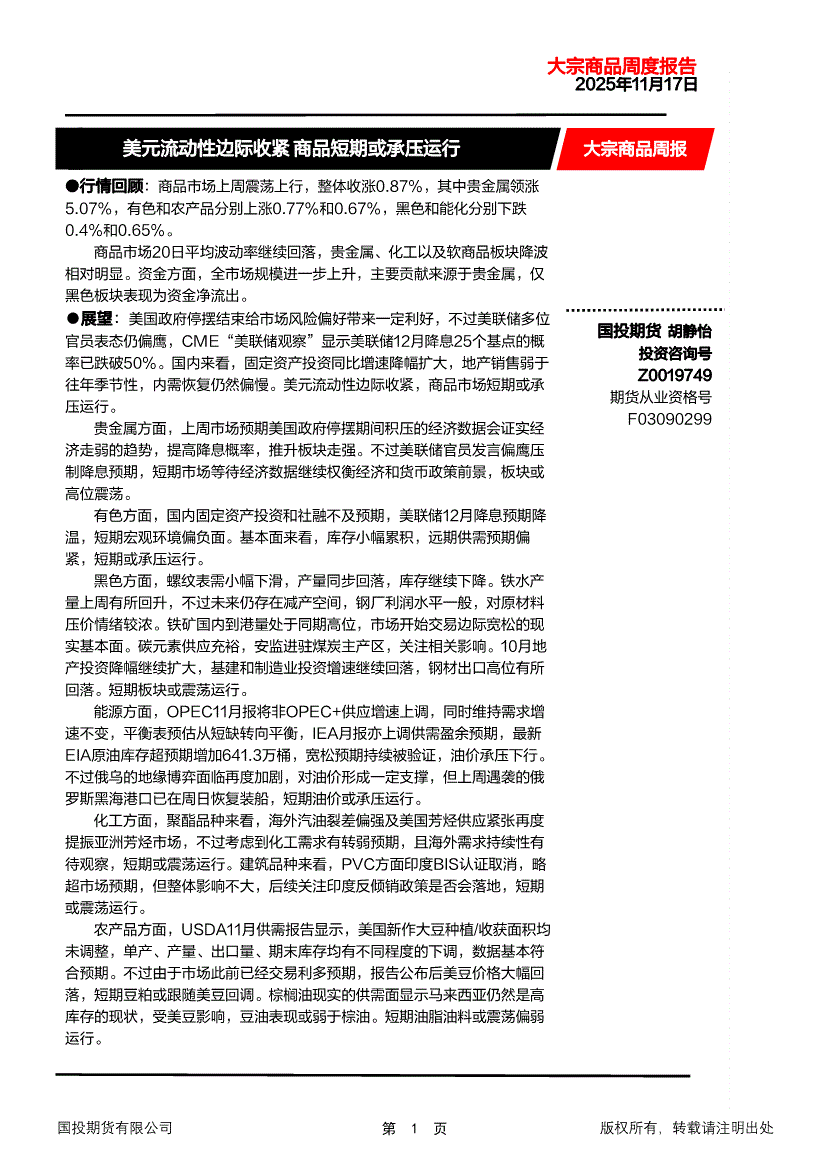 国投期货-大宗商品周报:美元流动性边际收紧,商品短期或承压运行-251117