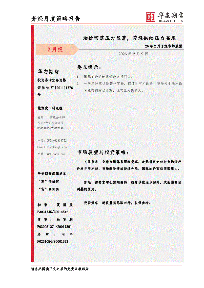 华安期货-26年2月芳烃市场展望:油价回落压力显著,芳烃供给压力显现-260209